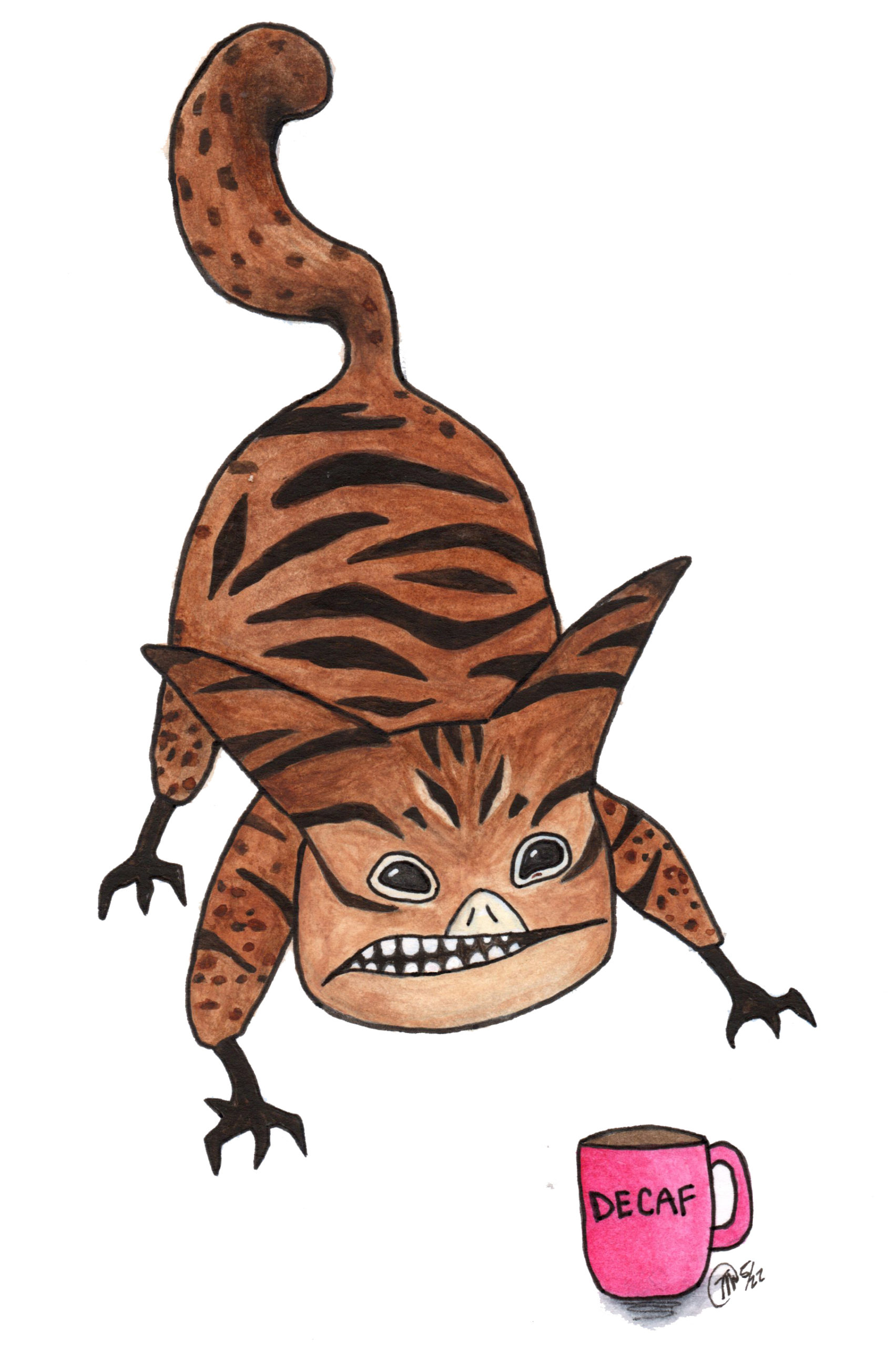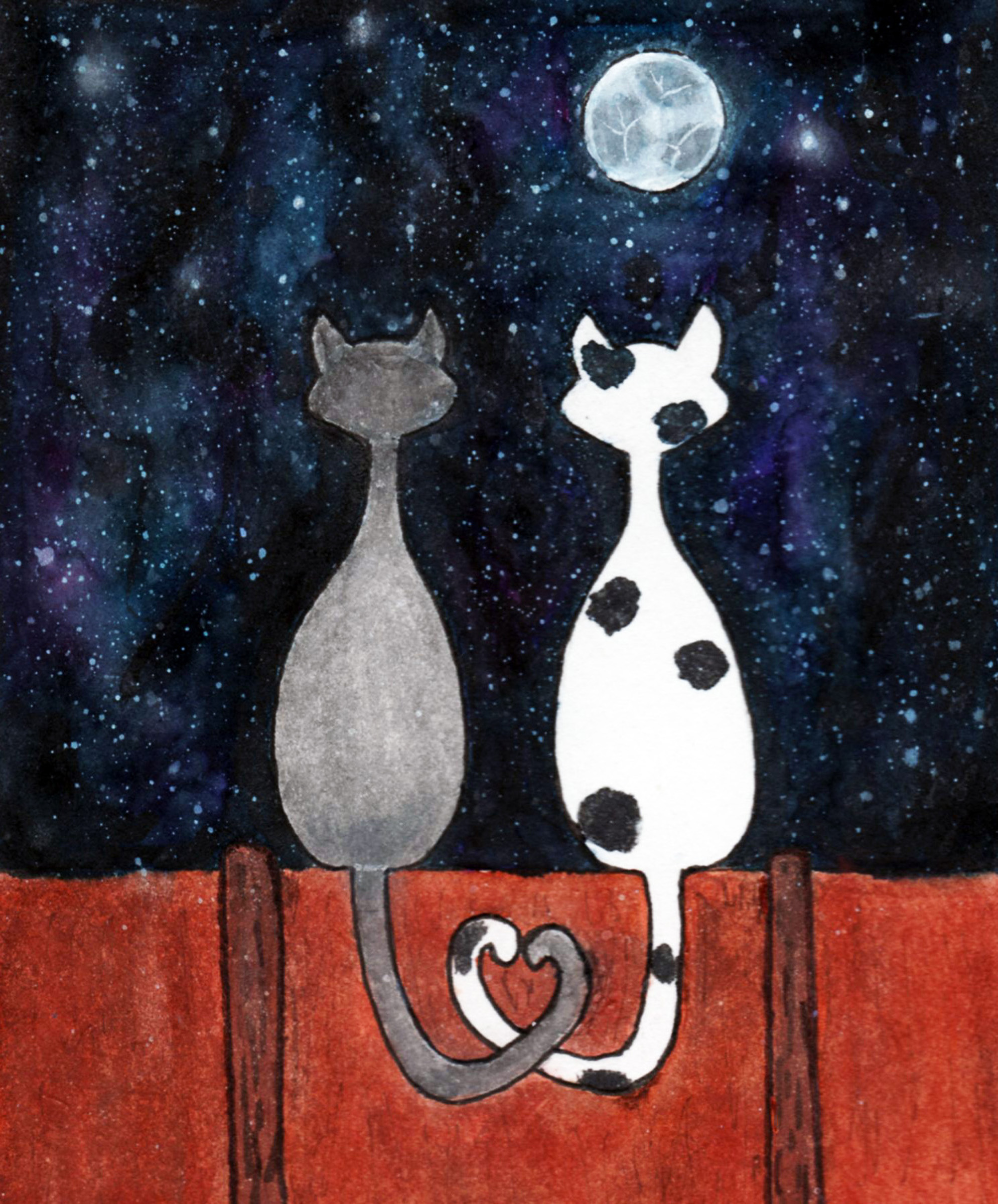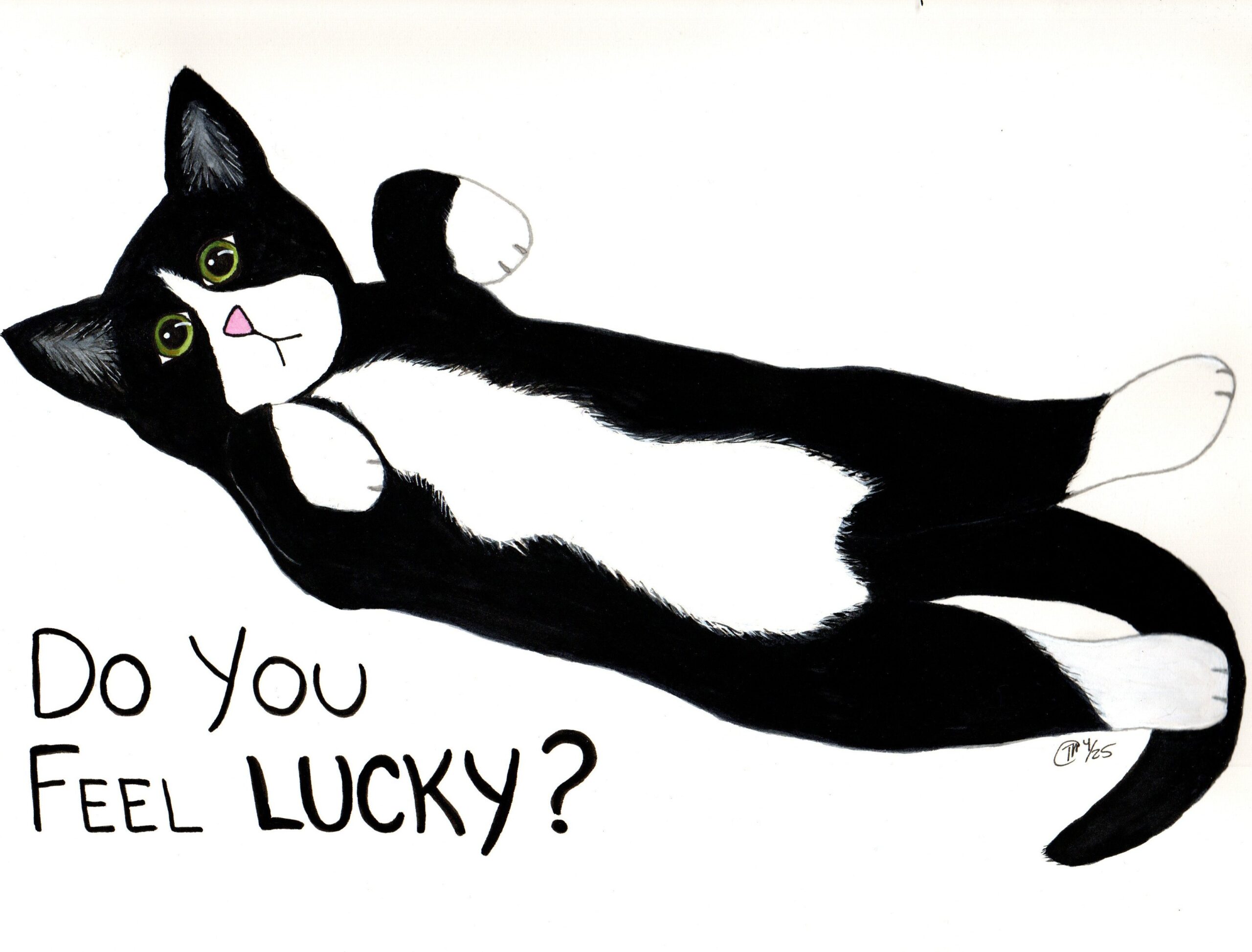I’m a mixed media artist and purrveyer of whimsically cute designs. Most designs will fit both 4×6 & 5×7 mats. Some small designs look best on 4×6 mats and others look best on 5×7 mats. Some of the designs fit both 5×7 & 8×10 mats. Some designs will only fit 8×10 or 8.5×11 size mats. A few of my block print designs were popular enough I made 2nd versions that fit the smaller mats but some of the larger designs I can’t do that with. My mixed media designs can be resized to any of my standard mat sizes. I also have greeting cards (individual & sets), vinyl stickers, magnets, hand block printed bags & dish towels, tote bags, cat butt earrings, ornaments, and keyrings.